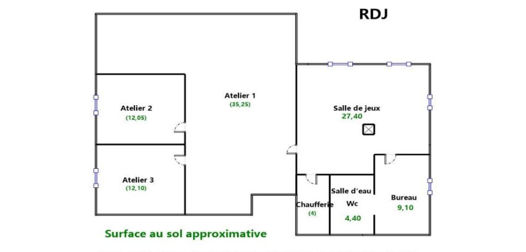 - Un atelier d'environ 60m² carrelé et chauffé.
