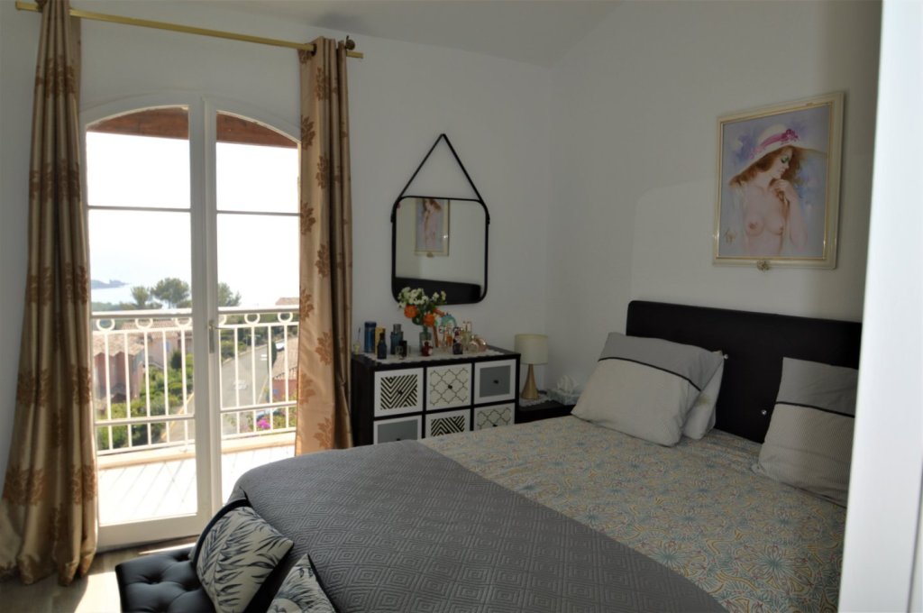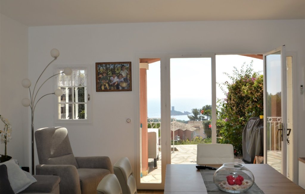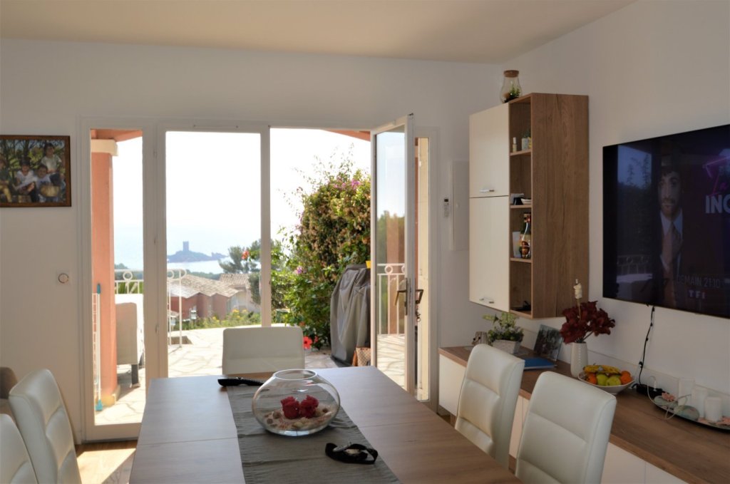 Dans un domaine sécurisé, 'Le Hameau du Cap Estérel', vous serez séduits par ce joli bastidon avec une vue mer exceptionnelle jusqu'à l'Ile d'Or. Il est composé de 3 pièces de 52 m² très bien optimisé, avec un séjour /cuisine américaine équipée donnant sur une terrasse plein sud, un wc séparé. A l'étage une suite parentale avec salle de bains et petit dressing, avec balcon terrasse, une chambre, une salle de douches avec wc. Nombreux placards. Le tout en parfait état idéal pour investissement ou pied à terre. Accès piscines et golf. Un garage complète ce bien.