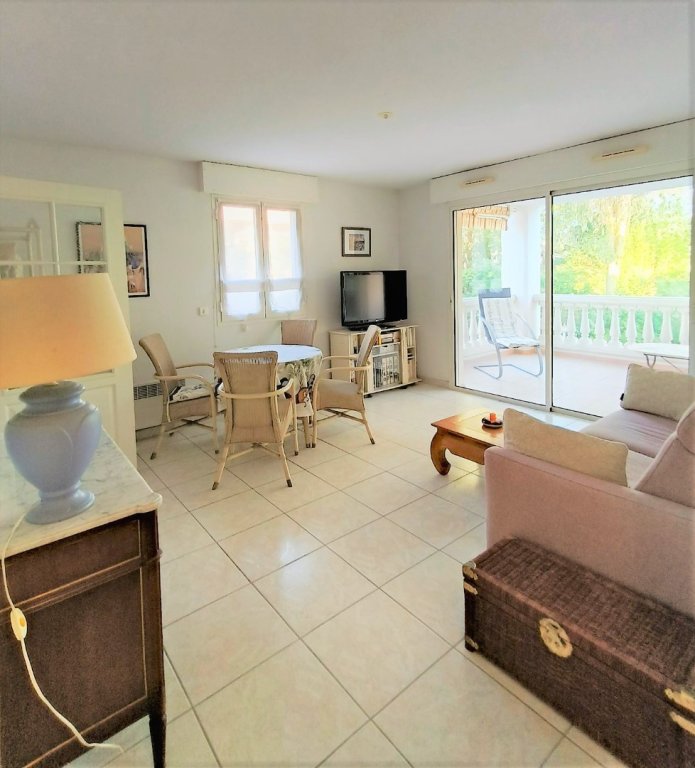 Dans une résidence de grand standing avec piscine, proche du centre-ville et de la mer, magnifique appartement 2 pièces avec grande terrasse. Il est composé d'une entrée, un séjour et cuisine américaine équipée ouvrant sur une spacieuse terrasse, une grande chambre avec placards et bénéficiant d'un accès sur la terrasse, une salle d'eau, WC séparés. Une place de parking privative et une cave sont vendues avec l'appartement.