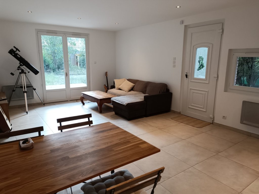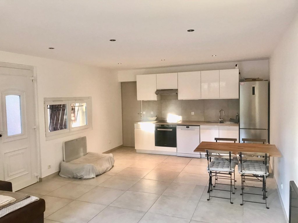 Dans copropriété de 2 lots seulement, (rez de chaussée et étage), rez de chaussée avec 219 M2 de jardin à jouissance exclusive et privative, entrée directe dans séjour avec cuisine aménagée et équipée ouverte, deux chambres avec placards, salle de douche avec espace buanderie attenant, WC séparé,