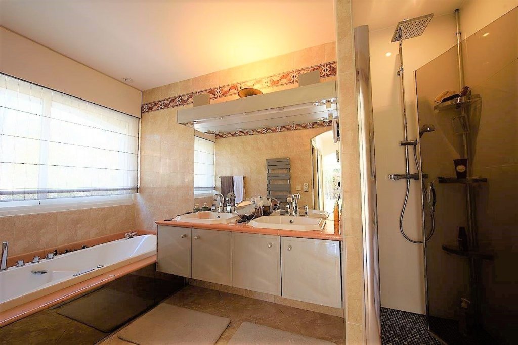 Villa d'architecte de 210m² dans le quartier résidentiel proche des golfs et des commerces. Cette belle villa construite sur 1235m² avec piscine chauffée, se compose de 4 chambres dont une suite parentale en rez de chaussée, d'un grand double salon, d'une salle à manger, d'une cuisine, d'un triple garage et d'un sous sol complet. Cette belle villa vous séduira par ses beaux espaces et sa luminosité!